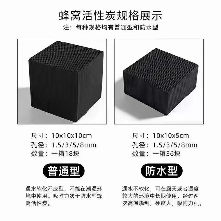 綜上所述,了解蜂窩活性炭的常見尺寸、每方的數量、每箱的數量以及重量等信息對于用戶選擇合適的產品和計算成本至關重要。同時,這些參數也是廠家進行生產管理和質量控制的重要依據。 在實際應用中,用戶也可以根據具體的過濾需求和處理量來選擇合適尺寸的蜂窩活性炭,并根據實際情況進行具體的計算和測量。